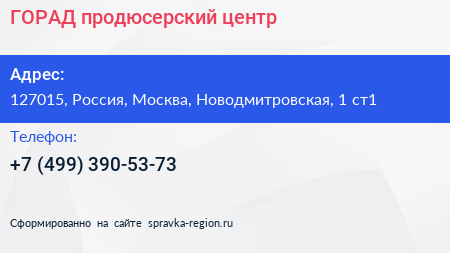 ГОРАД, продюсерский центр по адресу 127015, Россия, Москва, Новодмитровская, 1 ст1 в дальнейшем Организация, размещена в следующих категориях: