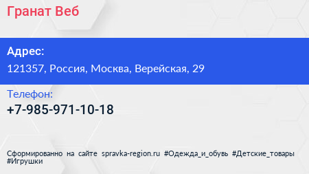 Гранат Веб по адресу 121357, Россия, Москва, Верейская, 29 в дальнейшем Организация, размещена в следующих категориях: