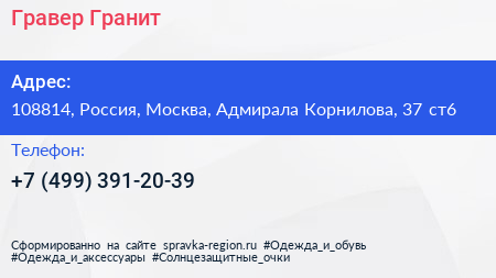 Гравер-Гранит по адресу 108814, Россия, Москва, Адмирала Корнилова, 37 ст6 в дальнейшем Организация, размещена в следующих категориях: