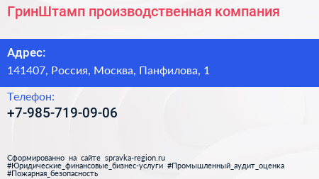 ГринШтамп, производственная компания по адресу 141407, Россия, Москва, Панфилова, 1 в дальнейшем Организация, размещена в следующих категориях: