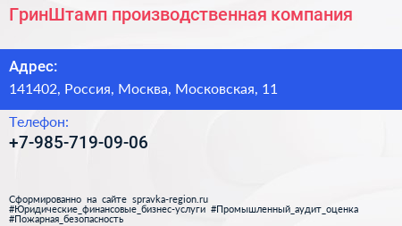 ГринШтамп, производственная компания по адресу 141402, Россия, Москва, Московская, 11 в дальнейшем Организация, размещена в следующих категориях: