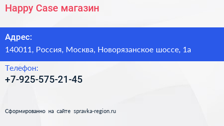 Happy Case, магазин по адресу 140011, Россия, Москва, Новорязанское шоссе, 1а в дальнейшем Организация, размещена в следующих категориях: