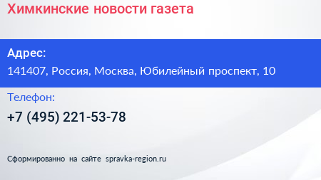 Химкинские новости, газета по адресу 141407, Россия, Москва, Юбилейный проспект, 10 в дальнейшем Организация, размещена в следующих категориях: