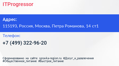 ITProgressor по адресу 115193, Россия, Москва, Петра Романова, 14 ст1 в дальнейшем Организация, размещена в следующих категориях: