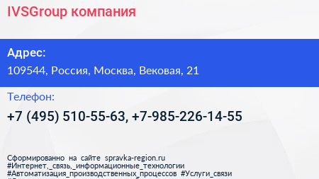 IVSGroup, компания по адресу 109544, Россия, Москва, Вековая, 21 в дальнейшем Организация, размещена в следующих категориях: