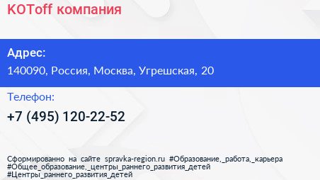KOToff, компания по адресу 140090, Россия, Москва, Угрешская, 20 в дальнейшем Организация, размещена в следующих категориях: