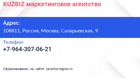 KUZBIZ, маркетинговое агентство по адресу 108811, Россия, Москва, Саларьевская, 9 в дальнейшем Организация, размещена в следующих категориях: