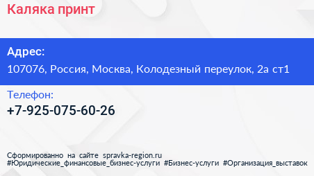 Каляка принт по адресу 107076, Россия, Москва, Колодезный переулок, 2а ст1 в дальнейшем Организация, размещена в следующих категориях: