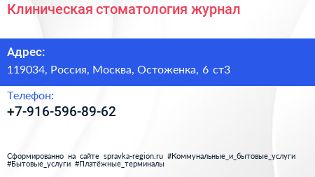 Клиническая стоматология, журнал по адресу 119034, Россия, Москва, Остоженка, 6 ст3 в дальнейшем Организация, размещена в следующих категориях:
