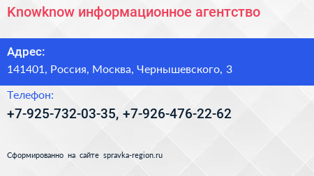 Knowknow, информационное агентство по адресу 141401, Россия, Москва, Чернышевского, 3 в дальнейшем Организация, размещена в следующих категориях: