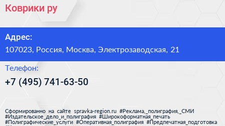 Коврики.ру по адресу 107023, Россия, Москва, Электрозаводская, 21 в дальнейшем Организация, размещена в следующих категориях: