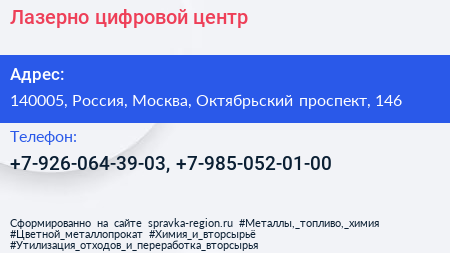 Лазерно-цифровой центр по адресу 140005, Россия, Москва, Октябрьский проспект, 146 в дальнейшем Организация, размещена в следующих категориях: