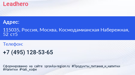 Leadhero по адресу 115035, Россия, Москва, Космодамианская Набережная, 52 ст5 в дальнейшем Организация, размещена в следующих категориях: