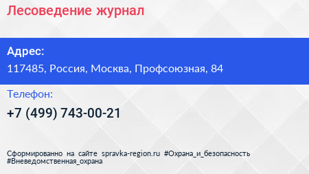 Лесоведение, журнал по адресу 117485, Россия, Москва, Профсоюзная, 84 в дальнейшем Организация, размещена в следующих категориях: