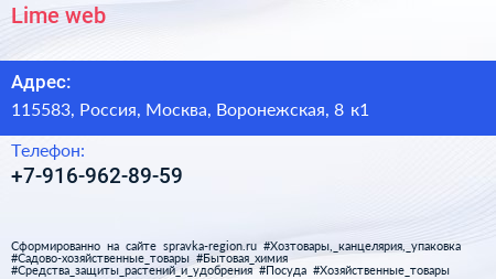 Lime-web по адресу 115583, Россия, Москва, Воронежская, 8 к1 в дальнейшем Организация, размещена в следующих категориях: