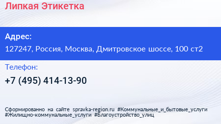 Липкая Этикетка по адресу 127247, Россия, Москва, Дмитровское шоссе, 100 ст2 в дальнейшем Организация, размещена в следующих категориях: