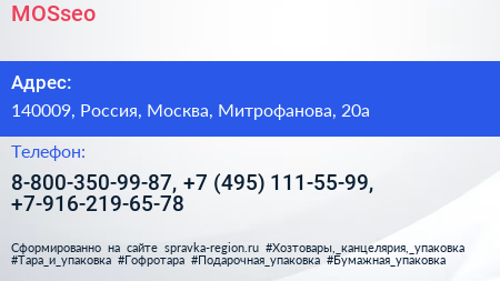 MOSseo по адресу 140009, Россия, Москва, Митрофанова, 20а в дальнейшем Организация, размещена в следующих категориях: