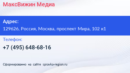 МаксВижин Медиа по адресу 129626, Россия, Москва, проспект Мира, 102 к1 в дальнейшем Организация, размещена в следующих категориях:
