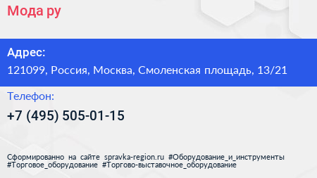 Мода.ру по адресу 121099, Россия, Москва, Смоленская площадь, 13/21 в дальнейшем Организация, размещена в следующих категориях: