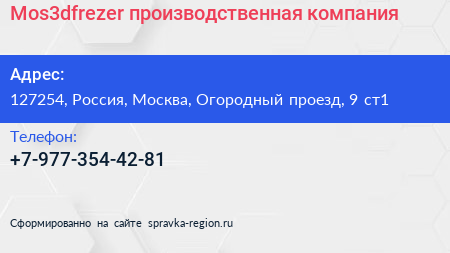 Mos3dfrezer, производственная компания по адресу 127254, Россия, Москва, Огородный проезд, 9 ст1 в дальнейшем Организация, размещена в следующих категориях:
