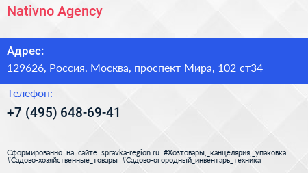 Nativno Agency по адресу 129626, Россия, Москва, проспект Мира, 102 ст34 в дальнейшем Организация, размещена в следующих категориях: