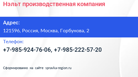 Нэльт, производственная компания по адресу 121596, Россия, Москва, Горбунова, 2 в дальнейшем Организация, размещена в следующих категориях: