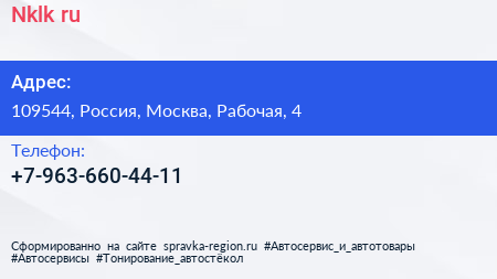 Nklk.ru по адресу 109544, Россия, Москва, Рабочая, 4 в дальнейшем Организация, размещена в следующих категориях: