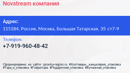 Novstream, компания по адресу 115184, Россия, Москва, Большая Татарская, 35 ст7-9 в дальнейшем Организация, размещена в следующих категориях:
