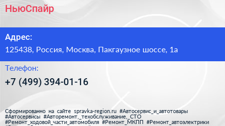 НьюСпайр по адресу 125438, Россия, Москва, Пакгаузное шоссе, 1а в дальнейшем Организация, размещена в следующих категориях: