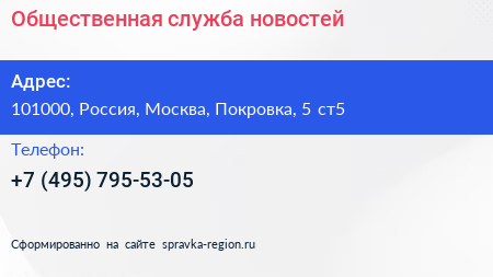Общественная служба новостей по адресу 101000, Россия, Москва, Покровка, 5 ст5 в дальнейшем Организация, размещена в следующих категориях: