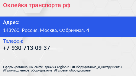 Оклейка-транспорта.рф по адресу 143960, Россия, Москва, Фабричная, 4 в дальнейшем Организация, размещена в следующих категориях: