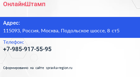 ОнлайнШтамп по адресу 115093, Россия, Москва, Подольское шоссе, 8 ст5 в дальнейшем Организация, размещена в следующих категориях: