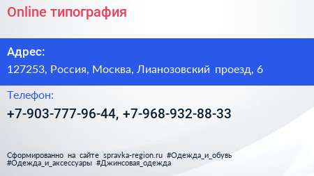 Online, типография по адресу 127253, Россия, Москва, Лианозовский проезд, 6 в дальнейшем Организация, размещена в следующих категориях: