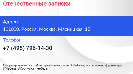 Отечественные записки по адресу 101000, Россия, Москва, Мясницкая, 15 в дальнейшем Организация, размещена в следующих категориях: