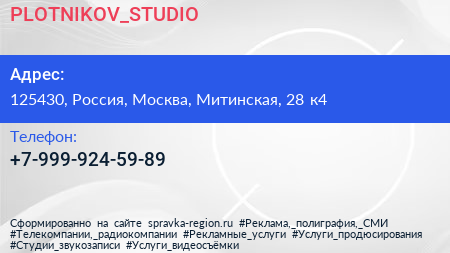 PLOTNIKOV_STUDIO по адресу 125430, Россия, Москва, Митинская, 28 к4 в дальнейшем Организация, размещена в следующих категориях: