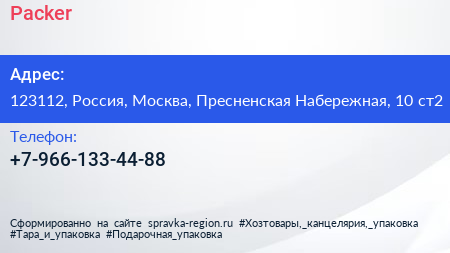 Packer по адресу 123112, Россия, Москва, Пресненская Набережная, 10 ст2 в дальнейшем Организация, размещена в следующих категориях: