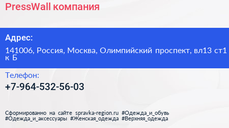 PressWall, компания по адресу 141006, Россия, Москва, Олимпийский проспект, вл13 ст1 к Б в дальнейшем Организация, размещена в следующих категориях: