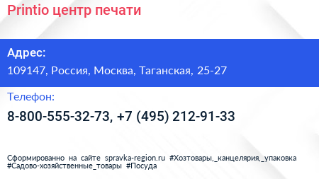 Printio, центр печати по адресу 109147, Россия, Москва, Таганская, 25-27 в дальнейшем Организация, размещена в следующих категориях: