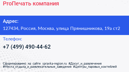 ProПечать, компания по адресу 127434, Россия, Москва, улица Прянишникова, 19а ст2 в дальнейшем Организация, размещена в следующих категориях: