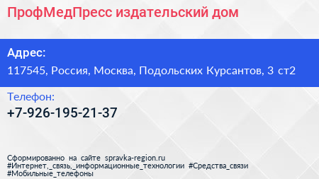 ПрофМедПресс, издательский дом по адресу 117545, Россия, Москва, Подольских Курсантов, 3 ст2 в дальнейшем Организация, размещена в следующих категориях: