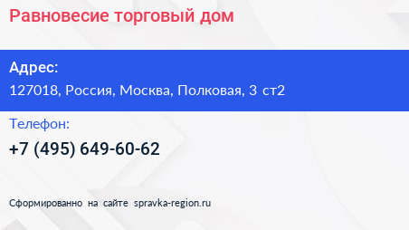 Равновесие, торговый дом по адресу 127018, Россия, Москва, Полковая, 3 ст2 в дальнейшем Организация, размещена в следующих категориях: