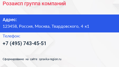 Розаисп, группа компаний по адресу 123458, Россия, Москва, Твардовского, 4 к1 в дальнейшем Организация, размещена в следующих категориях: