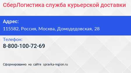 СберЛогистика, служба курьерской доставки по адресу 115582, Россия, Москва, Домодедовская, 28 в дальнейшем Организация, размещена в следующих категориях: