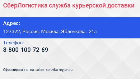 СберЛогистика, служба курьерской доставки по адресу 127322, Россия, Москва, Яблочкова, 21а в дальнейшем Организация, размещена в следующих категориях: