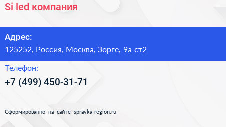Si-led, компания по адресу 125252, Россия, Москва, Зорге, 9а ст2 в дальнейшем Организация, размещена в следующих категориях: