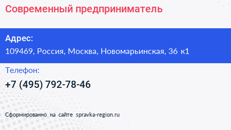 Современный предприниматель по адресу 109469, Россия, Москва, Новомарьинская, 36 к1 в дальнейшем Организация, размещена в следующих категориях: