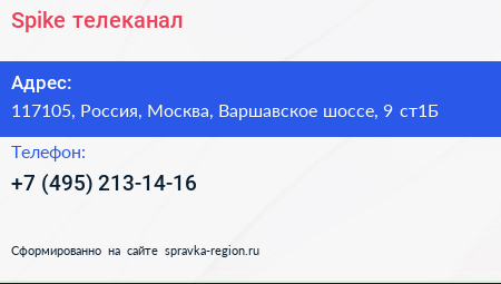 Spike, телеканал по адресу 117105, Россия, Москва, Варшавское шоссе, 9 ст1Б в дальнейшем Организация, размещена в следующих категориях: