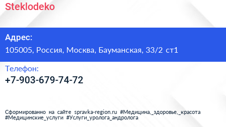 Steklodeko по адресу 105005, Россия, Москва, Бауманская, 33/2 ст1 в дальнейшем Организация, размещена в следующих категориях: