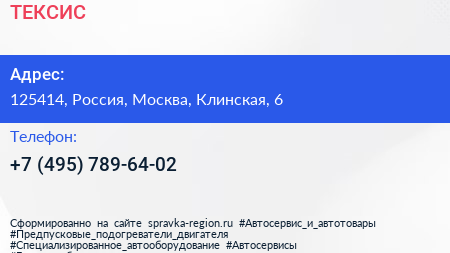 ТЕКСИС по адресу 125414, Россия, Москва, Клинская, 6 в дальнейшем Организация, размещена в следующих категориях: