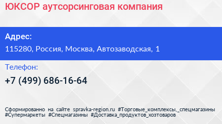 ЮКСОР, аутсорсинговая компания по адресу 115280, Россия, Москва, Автозаводская, 1 в дальнейшем Организация, размещена в следующих категориях:
